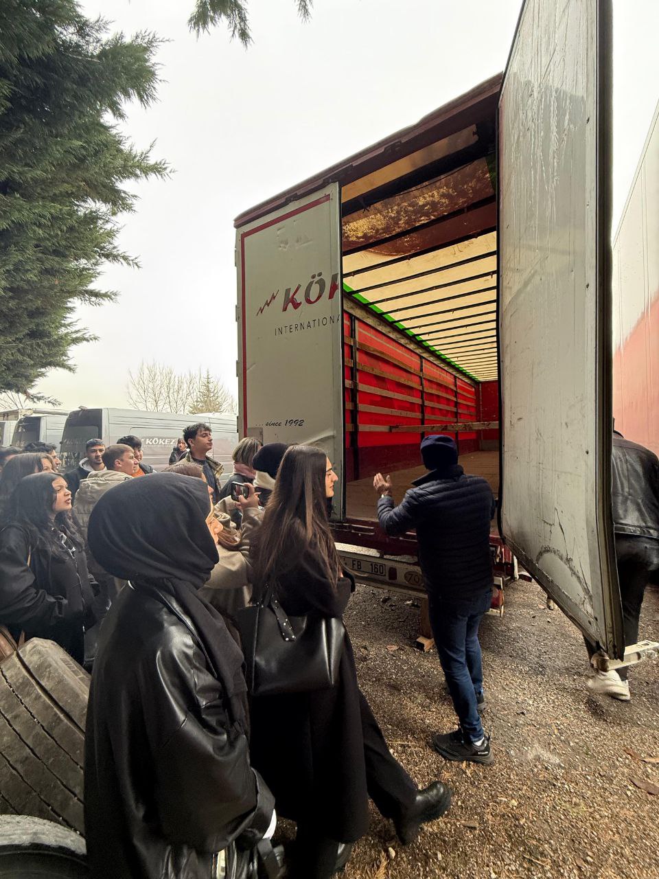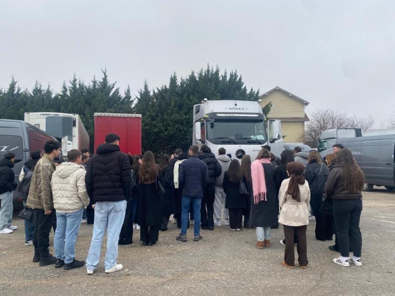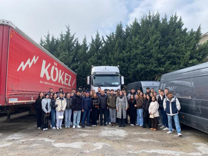 Ardından öğrenciler, Kökez Uluslararası Nakliyat A.Ş.’nin araç garajına geçerek lojistik operasyonlarının sahadaki uygulamalarını yakından inceleme fırsatı buldu. Ziyarette;