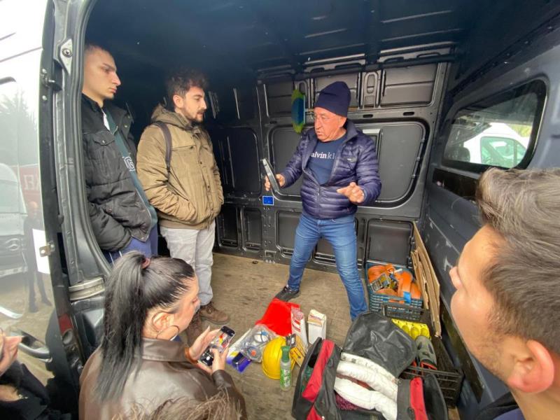 Teknik gezinin ilk durağı olan Uluslararası Nakliyeciler Derneği (UND) Bölge Müdürlüğü’nde, Batı Karadeniz Bölge Temsilcisi Nusret Özarslan derneğin tarihçesi, kuruluş amacı, uluslararası taşımacılık sektöründeki yeri ve faaliyetleri hakkında öğrencilere kapsamlı bilgiler aktardı.