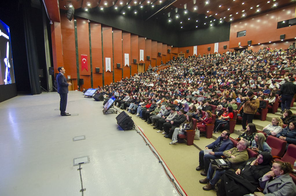 Üniversitemiz Kongre Merkezi Bordo Salon’da düzenlenen dev organizasyona; Rektörümüz Prof. Dr. Faruk Yiğit, ROKETSAN Genel Müdürü Murat İkinci, üniversite üst yönetimi ve çok sayıda öğrenci katıldı. Etkinlikte, savunma sanayisinin sadece bir üretim alanı değil, devasa bir lojistik ve teknoloji ağı olduğu vurgulandı.
