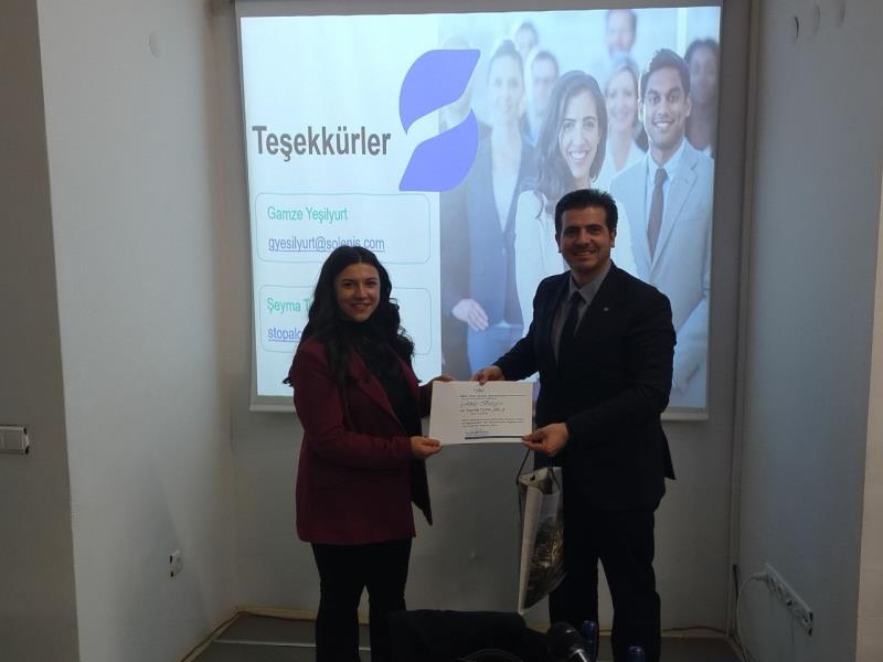 Eğitim sonunda Müdürümüz Doç. Dr. Uğur Soykan ve Dr. Öğr. Üyesi Eda Öndül Koç tarafından Sayın Yeşilyurt ve Topaloğlu'na teşekkür belgeleri ve kendileri için hazırlanan hediyeler takdim edildi.