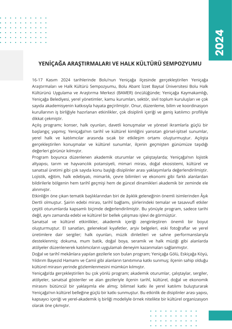 Yeniçağa Araştırmaları ve Halk Kültürü Sempozyumu Değerlendirme Raporu